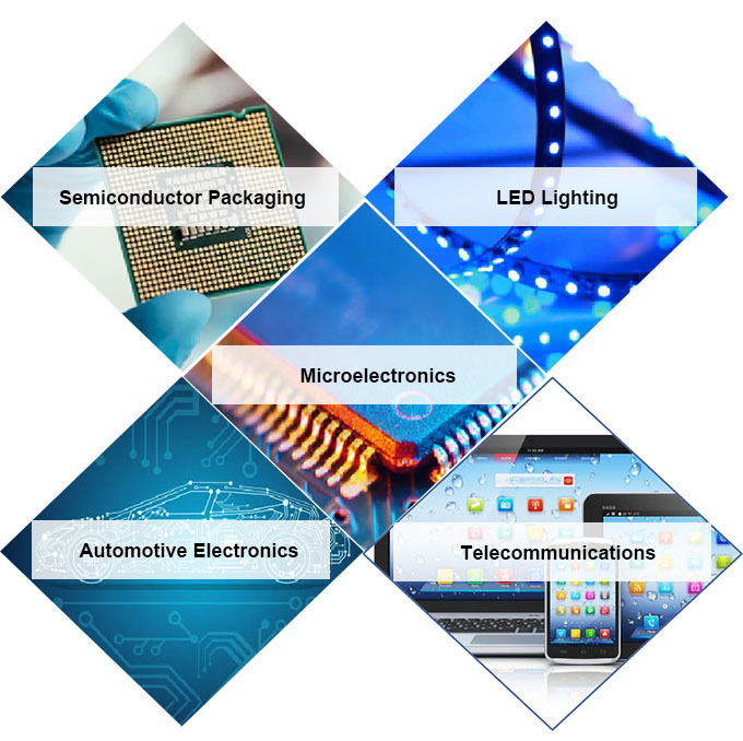 Semiconductor Packaging: Essential in the assembly of microchips and semiconductors, providing an efficient electrical connection between components.